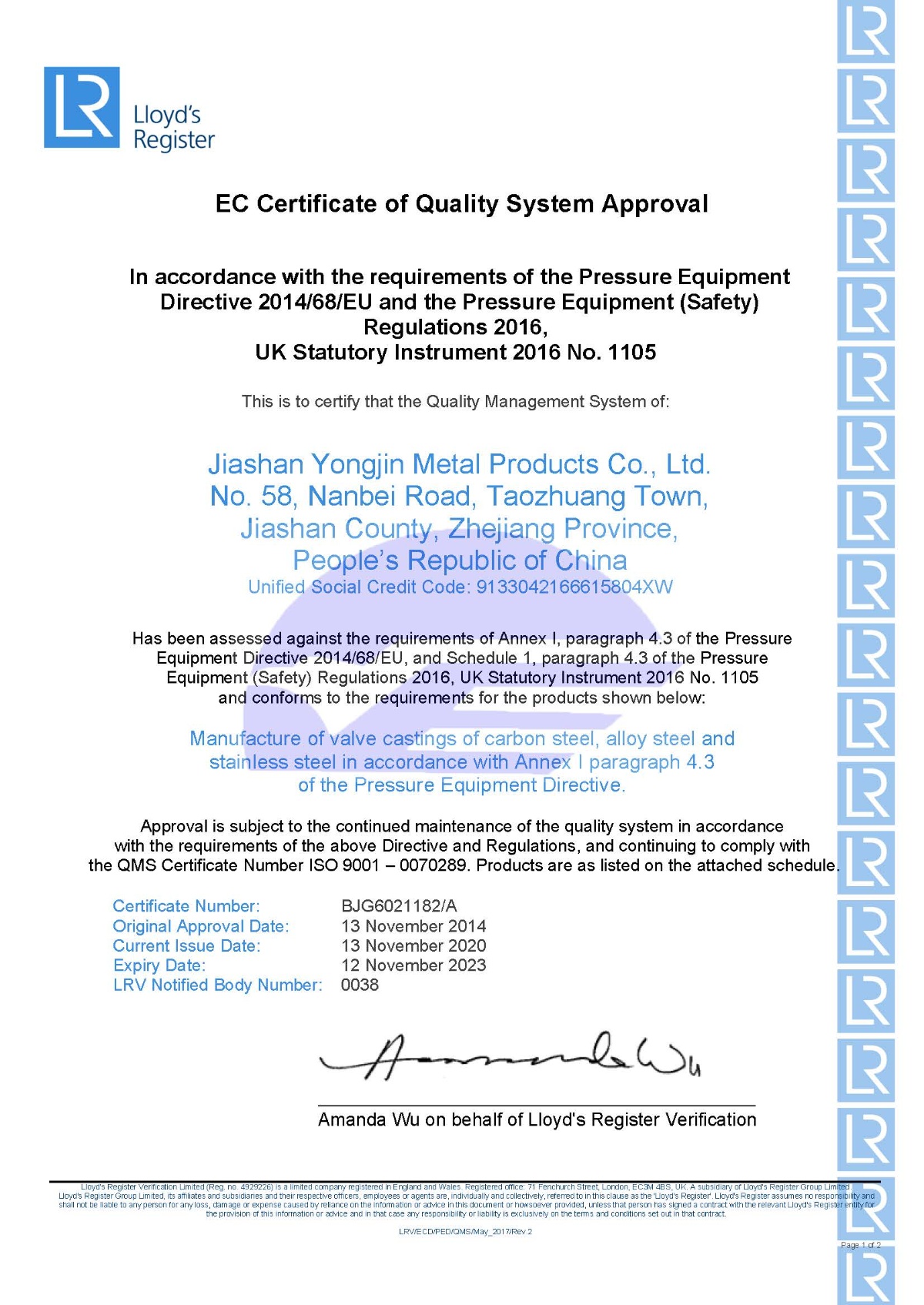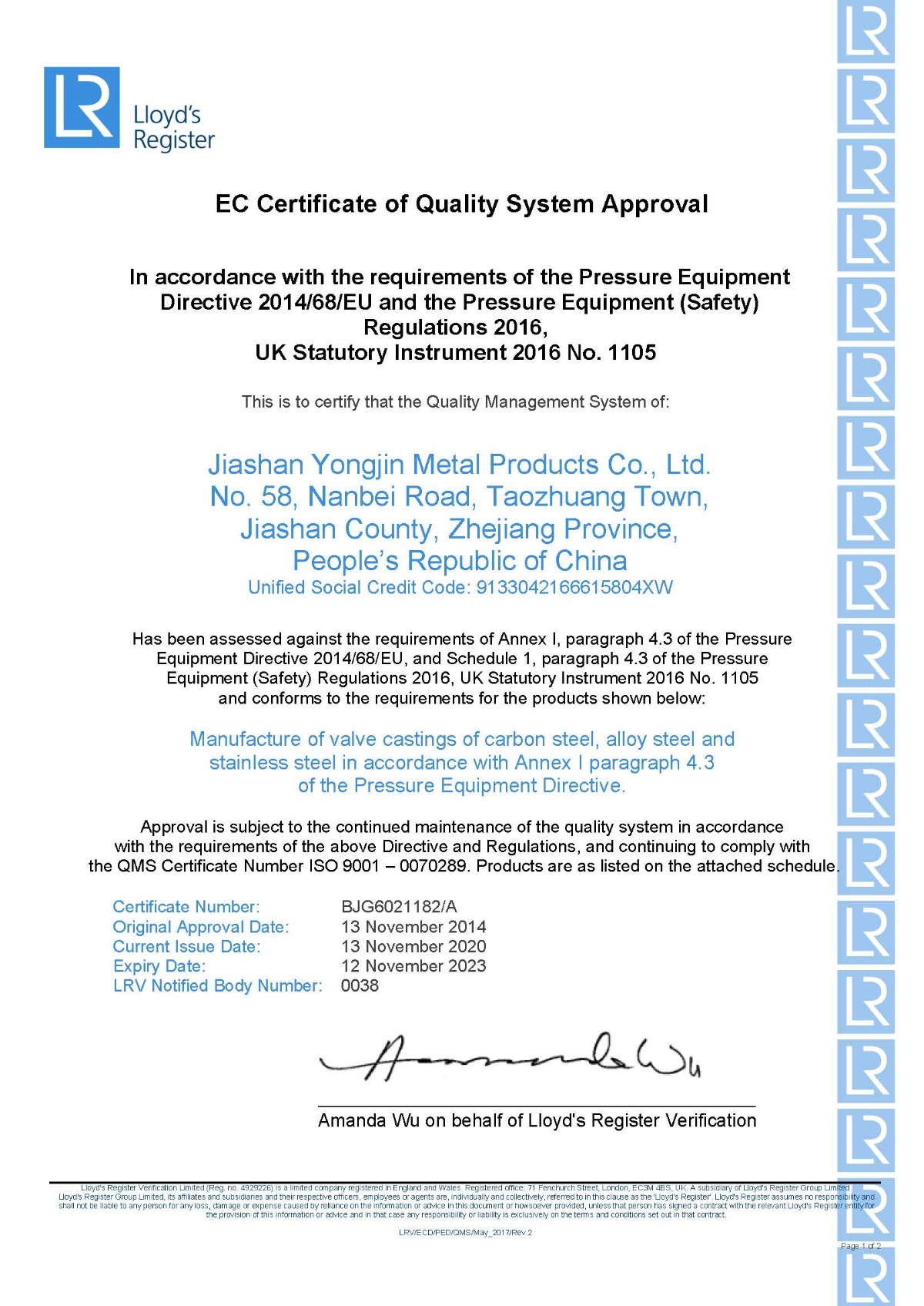 通過英國勞氏ISO9001-2015認(rèn)證